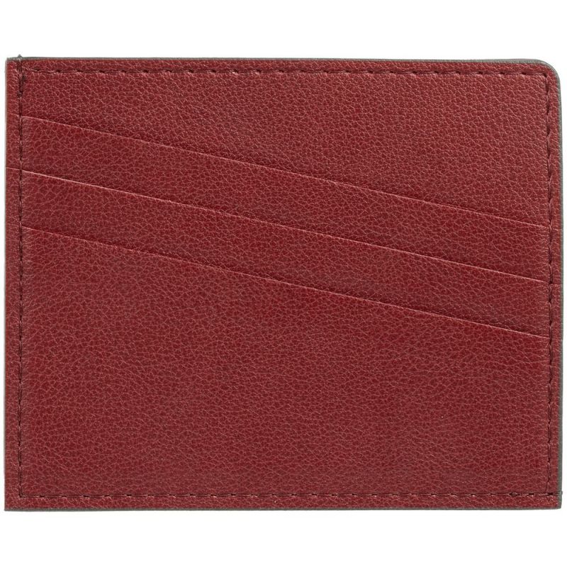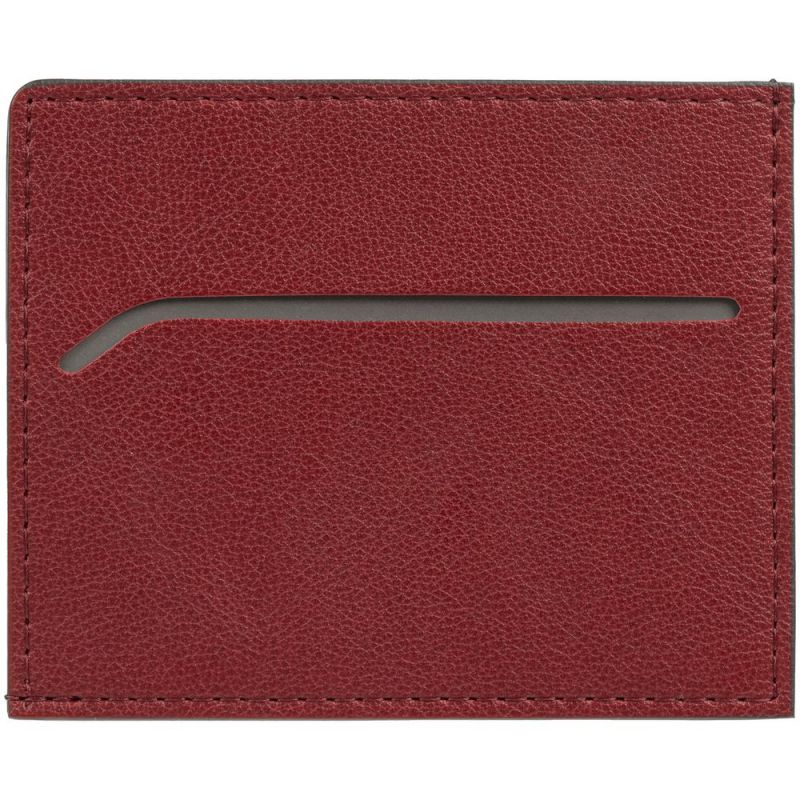 Чехол выполнен из материала Petrus, красный РР, дополнен окрашенным срезом края и внутренним карманом из серого картона. Имеет 4 отделения для кредитных карт и 1 отделение для купюр.