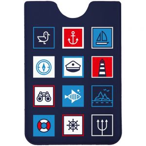 В каждой части общего рисунка изображены главные морские символы.Футляр можно использовать для хранения пропуска, пластиковой карточки или проездного билета.