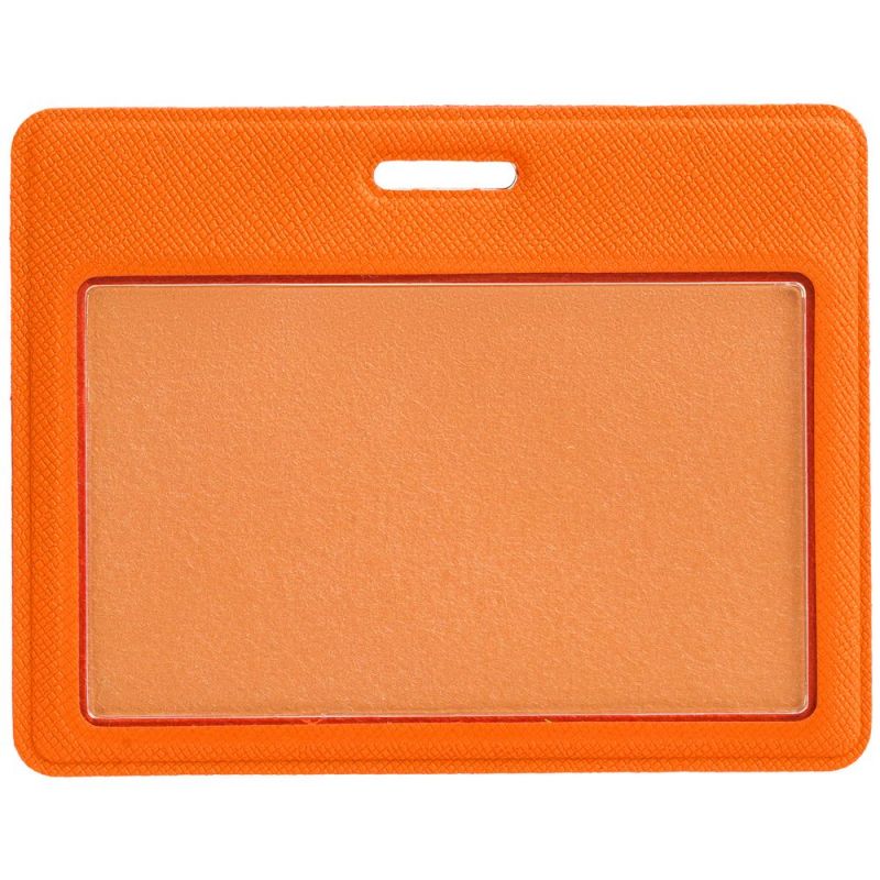 Чехол для карточки с пластиковым окошком из искусственного материала, имитирующего сафьяновую кожу.