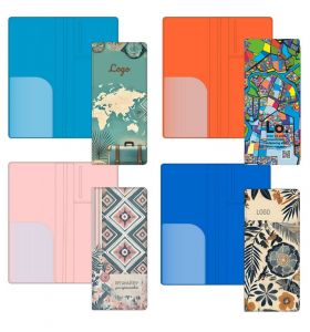 Органайзер из искусственного материала, имитирующего сафьяновую кожу, имеет 5 отделений: для билетов, паспорта, визиток или кредитных карт.