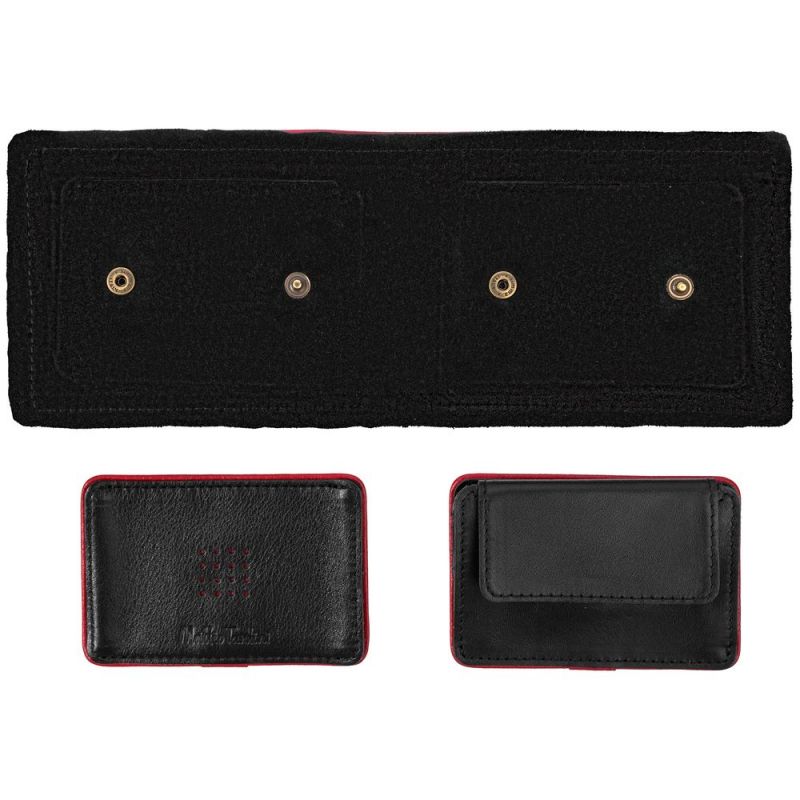 Натуральная кожа глубокого черного цвета и яркая контрастная окантовка — как страстная южная натура, сдержанная рамками условных приличий.