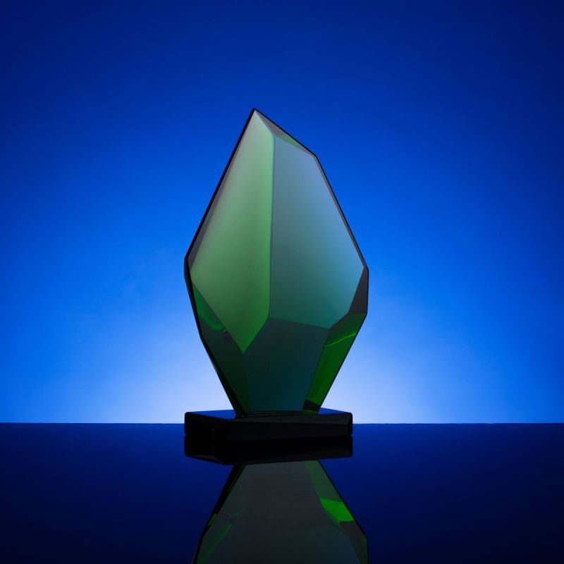 Эта стела-кристалл с легкостью поместится на ладони и подарит бурю положительных эмоций при награждении! Оригинальные стелы Cristallino напоминают эстетичные обломки настоящих кристаллов или минеральных камней, притягательных в своей уникальности и естественной простоте. Благодаря материалу — премиальному стеклу К9 — и особой технике окрашивания рождается оптический эффект: свет преломляется сквозь цветные грани, делая всю награду живой и яркой.