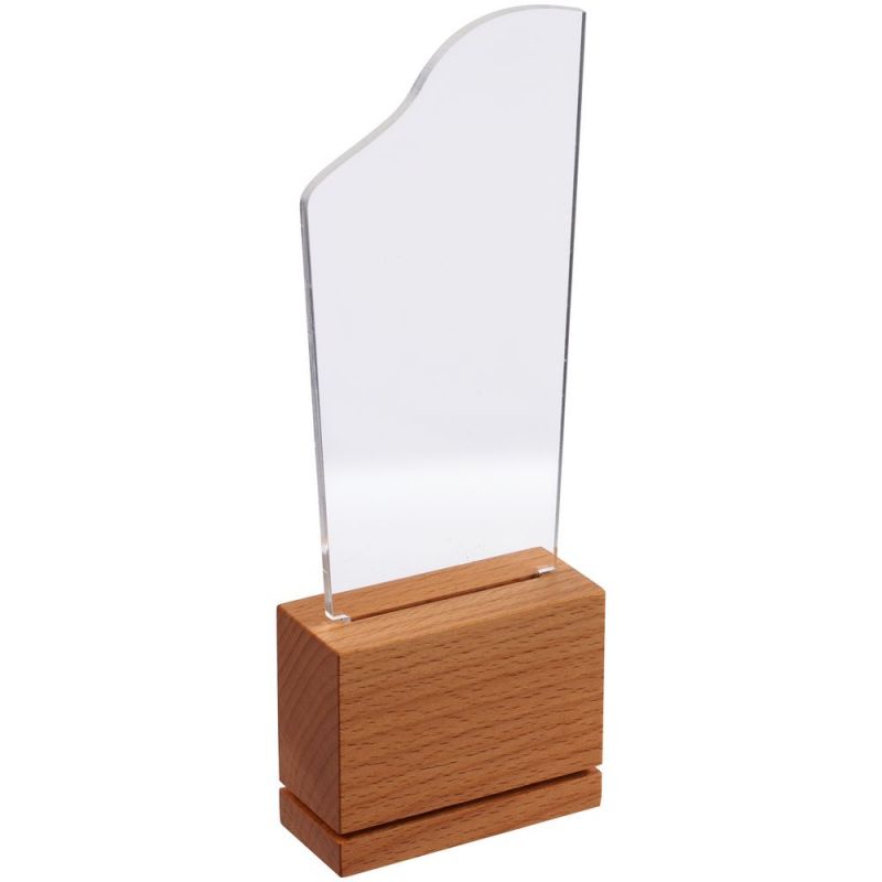 Стела New Tribute — это массивное основание из бука с гладкой фактурой и тонкая прозрачная вставка из акрила. Идеальный баланс устойчивости и легкости важен не только для создания награды привлекательной формы, но и для достижения результата, который этой наградой будет отмечен.