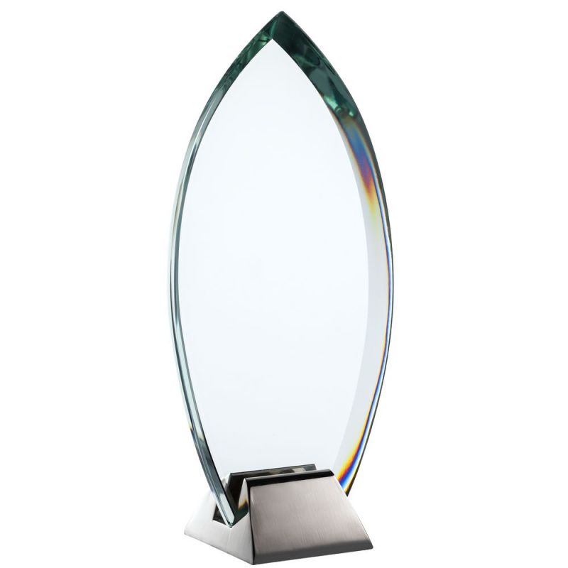 Конструкция награды разъемная: стеклянную часть стелы при необходимости можно вынуть из основания.