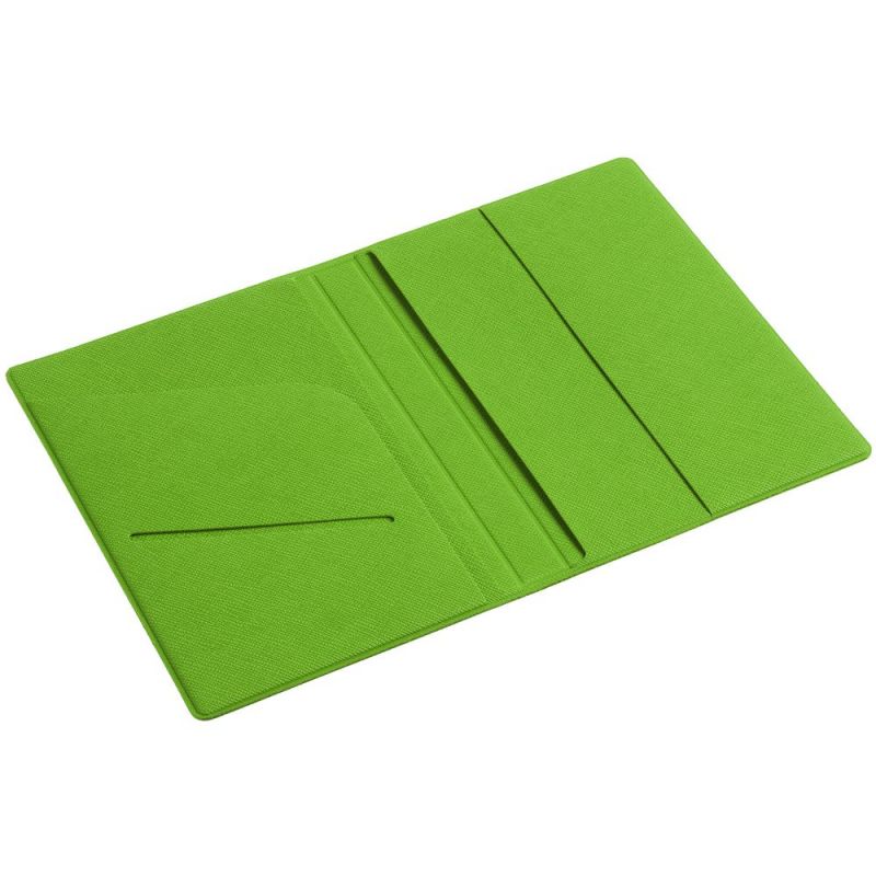 Обложка из искусственного материала, имитирующего сафьяновую кожу, с дополнительными карманами для визиток, полиса ОМС или записок.