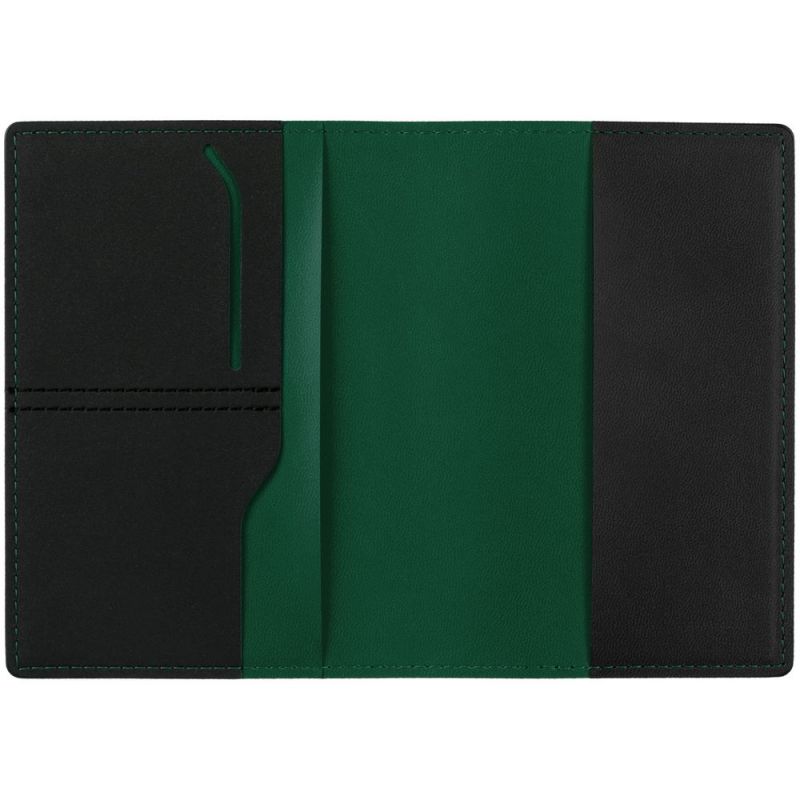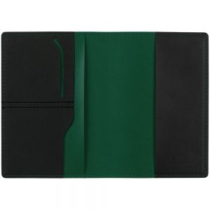 Обложка выполнена из материала Soft Touch Pearl, черный АА и срез обложки окрашен в цвет внутреннего материала Latte, зеленый FF.