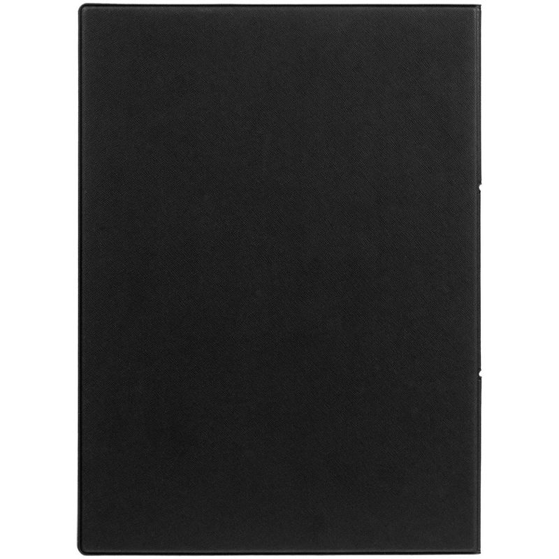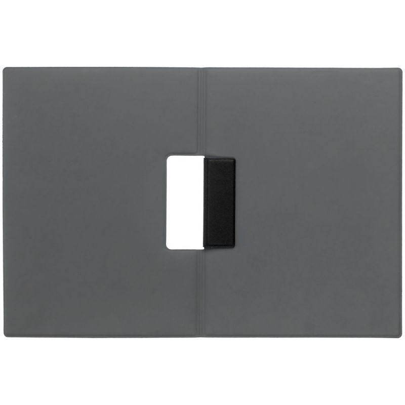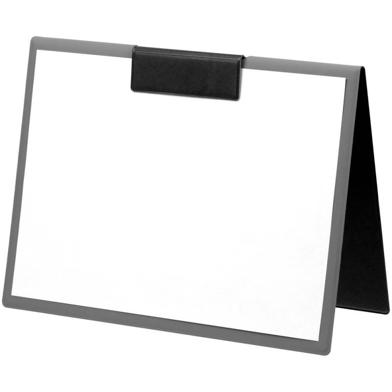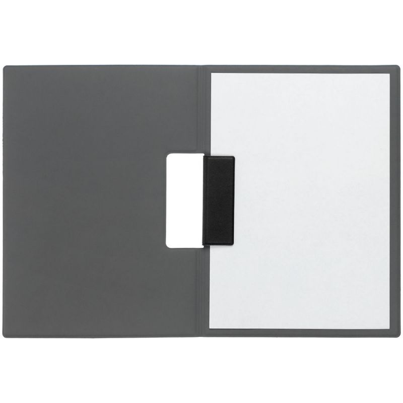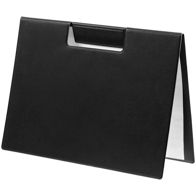 Папку можно использовать в стандартном вертикальном формате или перегнуть обложку и поставить в качестве таблички горизонтально. Магнитный клип удерживает до 10 листов.