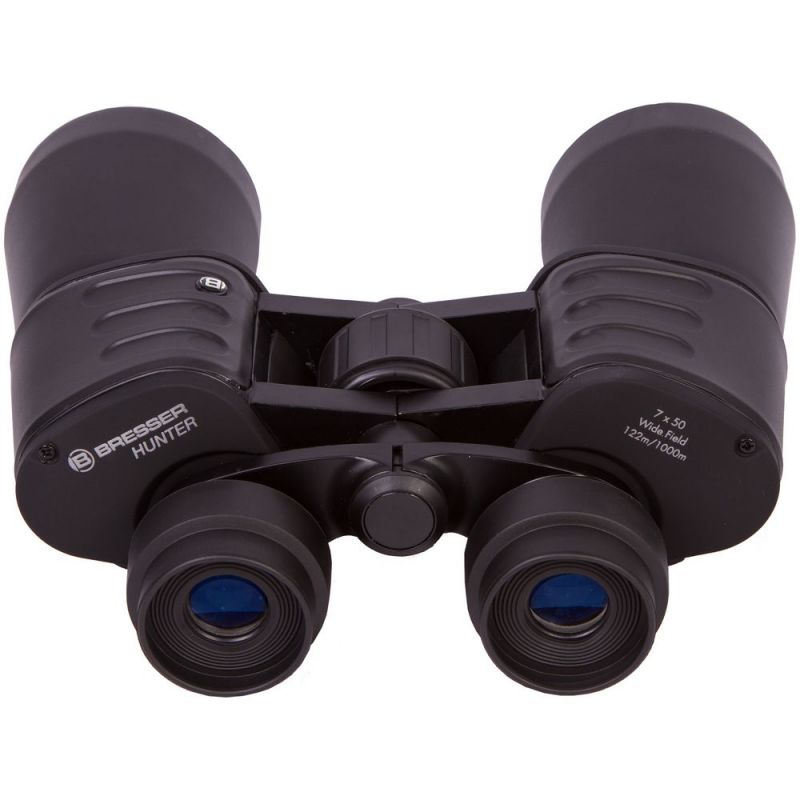 Бинокль создан на базе классической системы призм Порро, сделанных из стекла BK-7 с многослойным просветлением. Увеличение — 7x, диаметр объективов — 50 мм. Минимальное фокусное расстояние — 5 м. Бинокль имеет функцию подстройки межзрачкового расстояния и диоптрийной коррекции окуляров. Встроенная система центральной фокусировки позволит быстро настроить резкость.В комплект входит чехол из полиэстера.