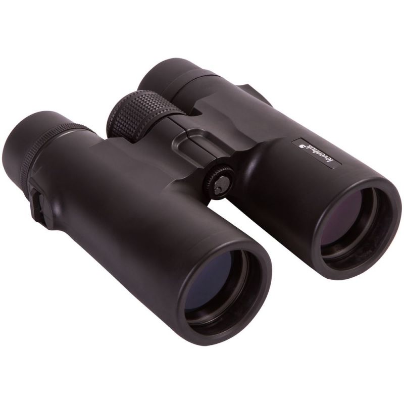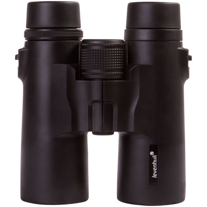 Бинокль создан на базе roof-призм и линз, сделанных из стекла BK-7. На линзы нанесено полное просветляющее покрытие — оно улучшает светопропускание и повышает качество картинки. У правого окуляра есть диоптрийная коррекция — с помощью специального кольца можно отрегулировать резкость в зависимости от особенностей зрения наблюдателя. Для фокусировки используется барабан, расположенный в центре корпуса. У окуляров увеличенный вынос зрачка и удобные поворотно-выдвижные наглазники, положение которых легко регулировать.