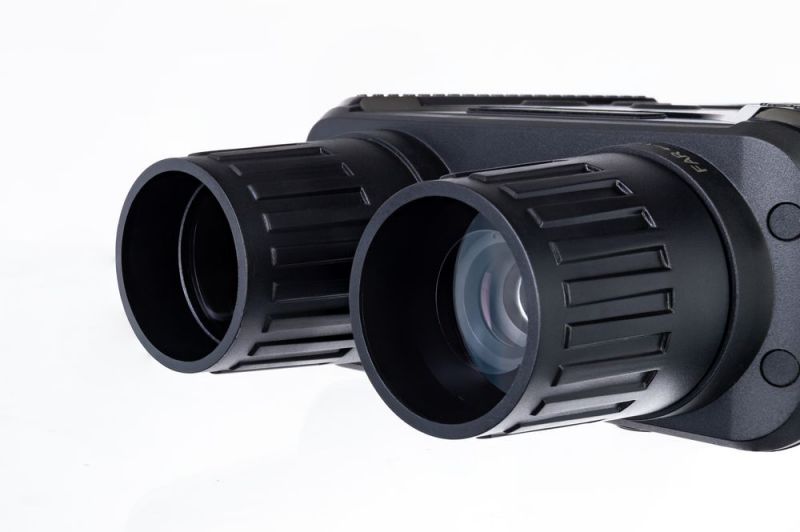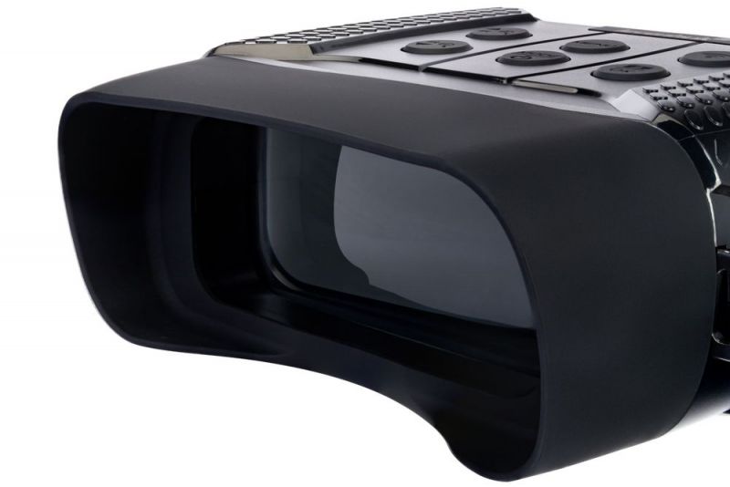 Корпус бинокля имеет эргономичную форму, поэтому удобно ложится в руку. Прибор также не боится брызг воды. Для управления используются всего шесть кнопок, поэтому работать с биноклем очень легко — все нужное находится под рукой. Одного комплекта батареек хватает на 4–10 часов непрерывной работы (длительность работы зависит от интенсивности использования ИК-подсветки).Бинокль с функцией прибора ночного видения. В комплект входит чехол из полиэстера.