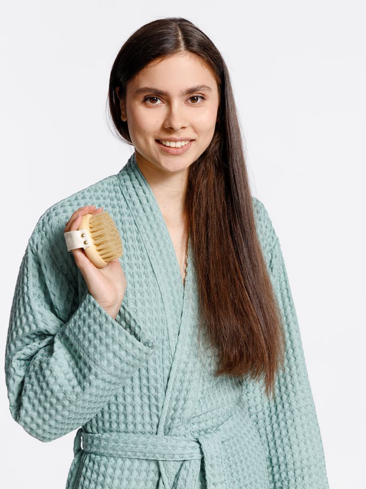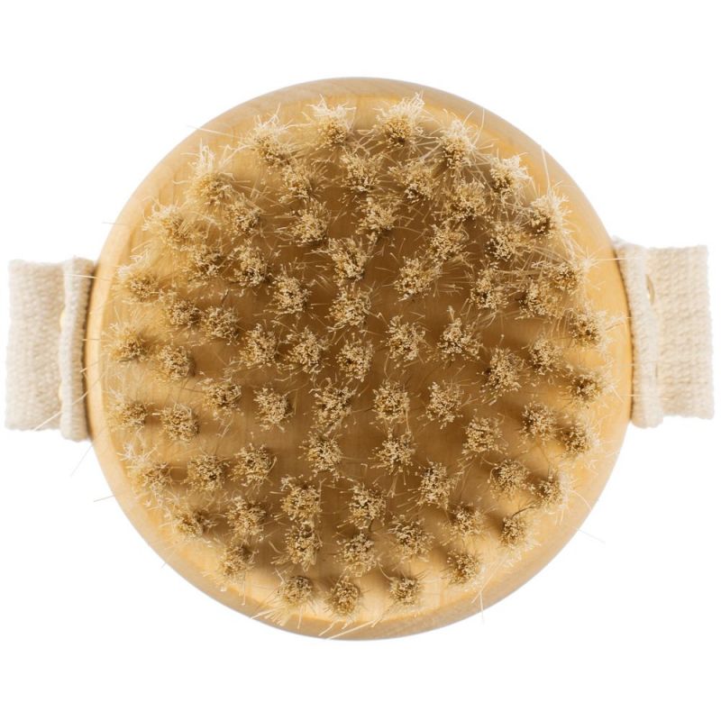Щетка изготовлена из экологичных материалов. Натуральная щетина средней жесткости защитит кожу от мелких повреждений, подарив только самые приятные ощущения.