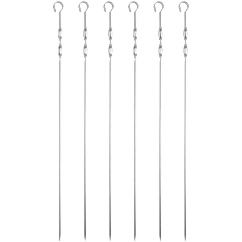 Длинные шампуры подходят для мангалов шириной до 40 см. Спираль у рукоятки позволяет фиксировать шампур при переворачивании шашлыка во время приготовления.
