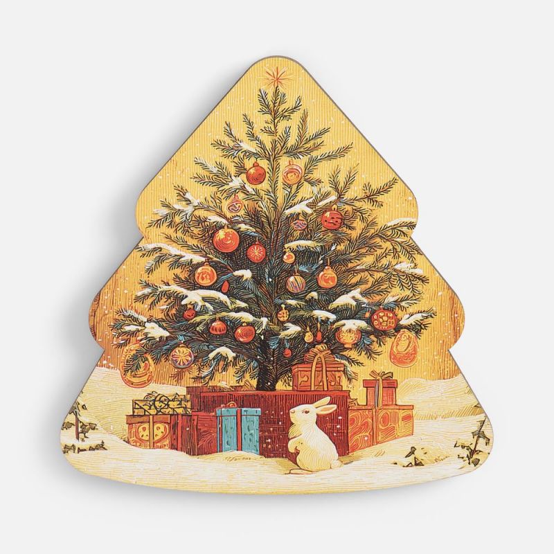 Очаровательный пазл в форме елочки — воплощение новогоднего уюта и тепла. Идеально украшенная елка в окружении подарков на фоне заснеженного пейзажа — просто сама гармония праздника. Такой стиль классической новогодней открытки подарит особое настроение и предвкушение волшебства!