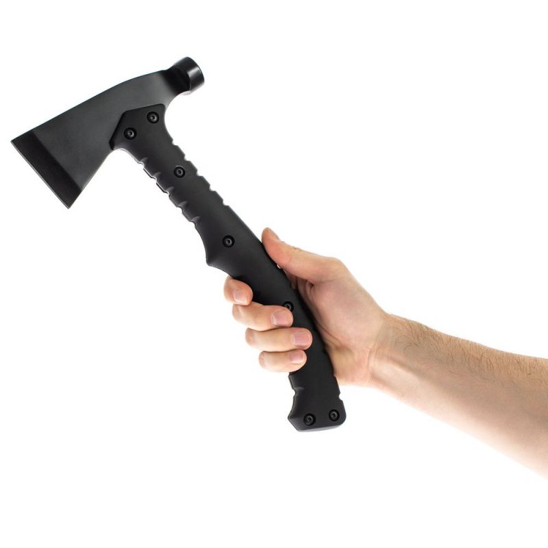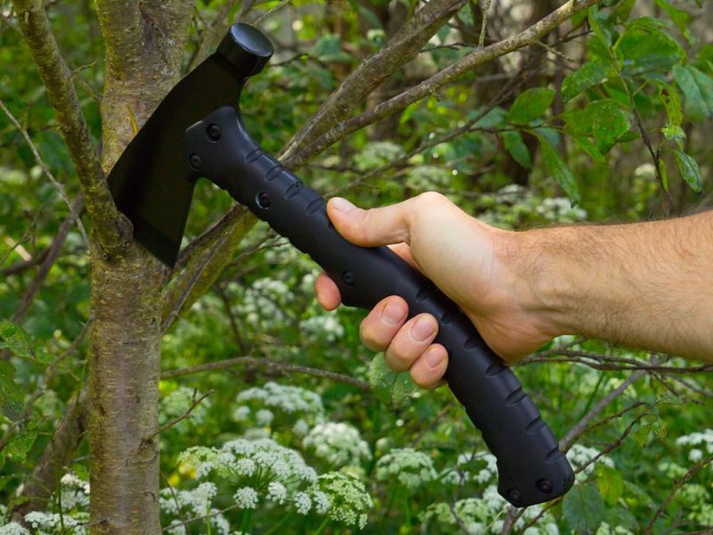 Туристический топор с молотком на обухе поможет нарубить дрова, расчистить место для стоянки, подготовить кострище и поставить лагерь.