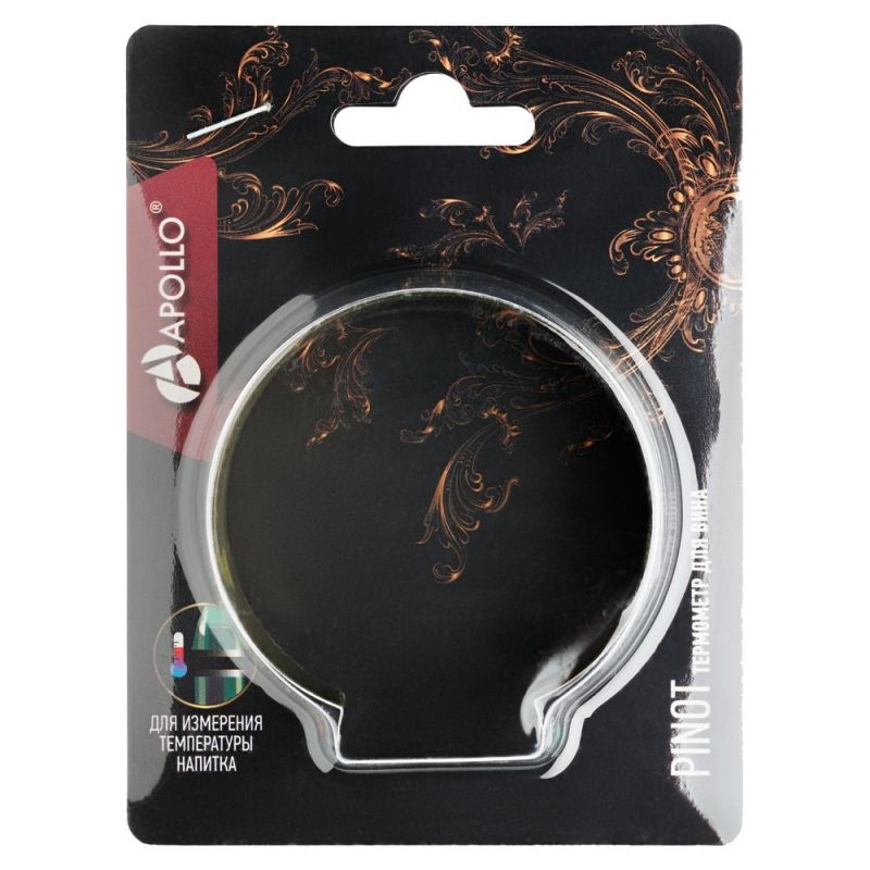 Термометр предназначен для измерения внешней температуры вина в бутылках. Термометр измеряет температуру в диапазоне от 4°С до 24°С и подходит для бутылок разного размера. На изделие нанесена шкала с указанием рекомендуемой оптимальной температуры подачи вина в зависимости от его типа: с Pinot необязательно помнить ее наизусть, достаточно воспользоваться подсказкой.