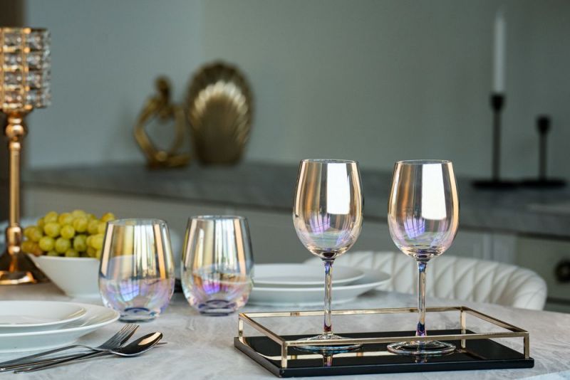Винные бокалы с перламутровым напылением Perola привлекают внимание своим изысканным дизайном. Переливающиеся разными цветами, бокалы зачаровывают и притягивают взгляды.