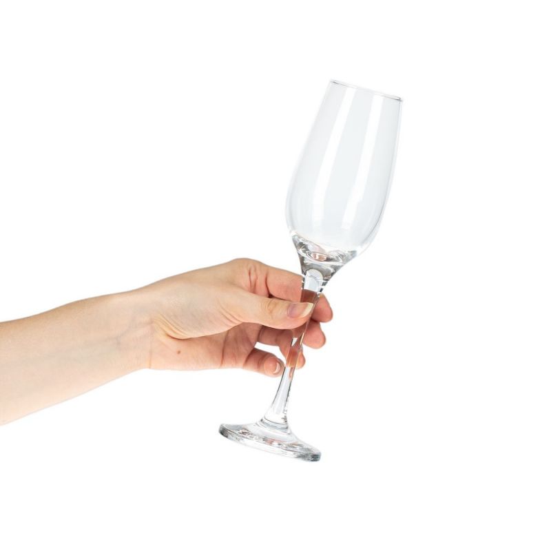 Классическая форма бокалов Amber украсит праздничный и не только стол, а также правильно раскроет вкусовой букет напитка, замедляя дегазацию — потерю пузырьков шампанского.