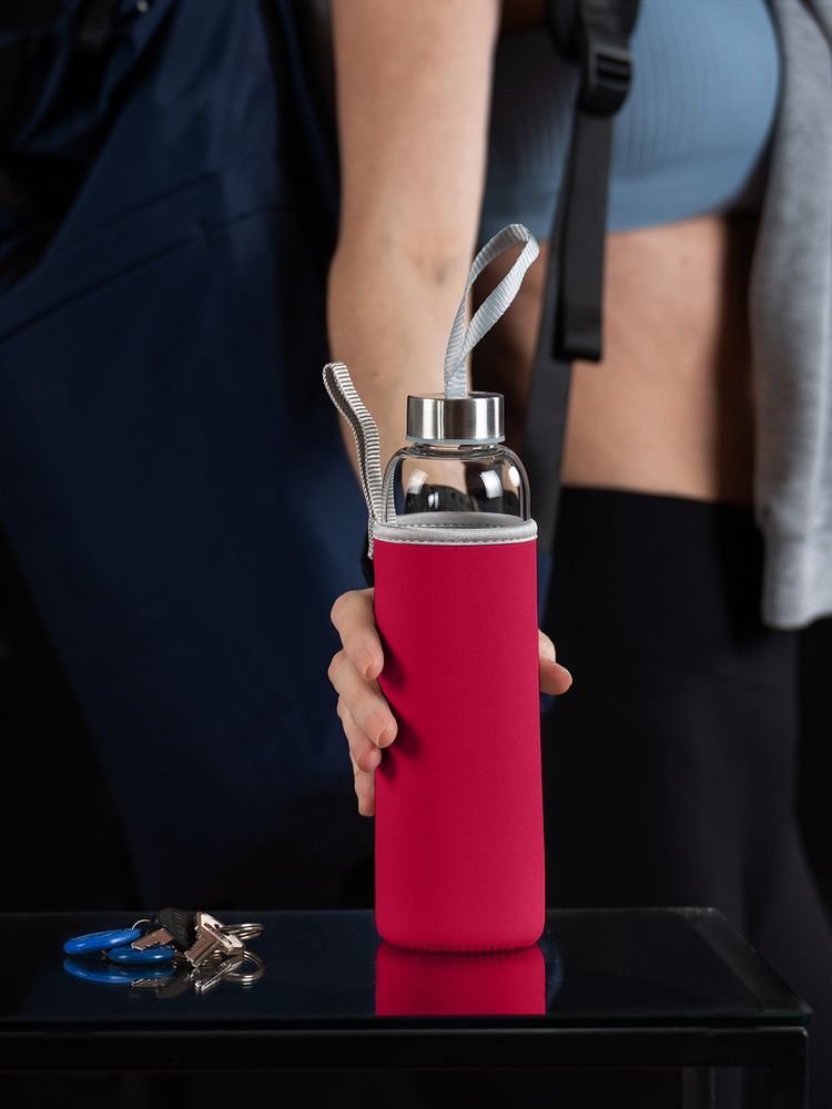 Легкое и прочное боросиликатное стекло не вступает в реакцию с содержимым и легко моется — вода в бутылке всегда будет чистой и вкусной. Мягкий чехол из неопрена для защиты при транспортировке в комплекте.