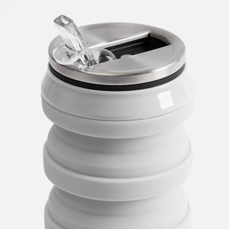 Складная бутылка для воды Folla привлекает внимание своим необычным внешним видом и функциональностью. По форме она больше всего напоминает классическую алюминиевую банку для напитков. При этом ее высоту можно легко увеличить с 10 до 20 см. В сложенном виде бутылка поместится даже в небольшую сумочку, а полный полезный объем составляет целых 480 мл.