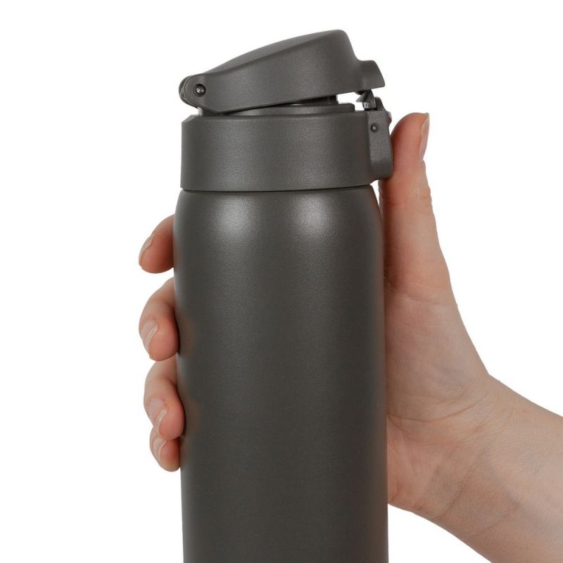 Термокружку легко открыть одной рукой — особенно удобно в машине или на улице. Дополнительный фиксатор на крышке предотвратит случайное проливание напитка.