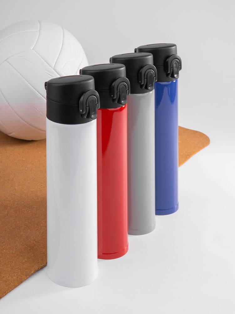 Термостакан Eimer в ровном цилиндрическом корпусе — эстетически приятная форма, на которую удобно делать круговое нанесение. Крышку с отщелкивающимся клапаном легко открыть одной рукой.