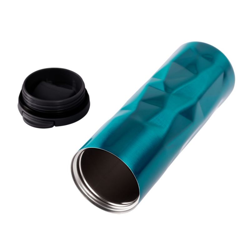 Двухслойная вакуумная конструкция из нержавеющей стали внутри и снаружи, герметичная завинчивающаяся крышка с откидным клапаном для питья.