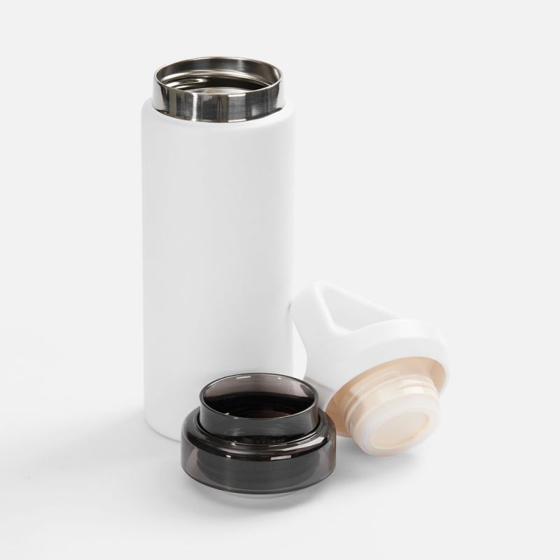 Термостакан Leval компактного размера с ситечком, удобной ручкой для переноски и надежной завинчивающейся крышкой — идеальный спутник на каждый день, готовый всегда поддерживать своего владельца горячим чаем, кофе или освежающей прохладной водой.