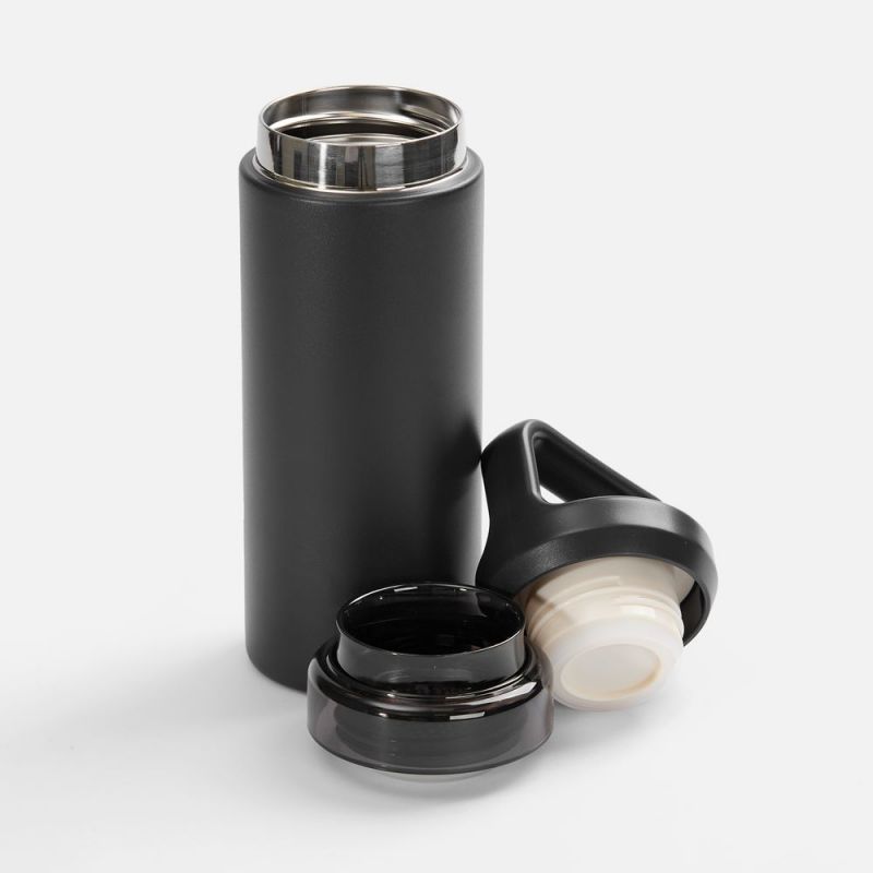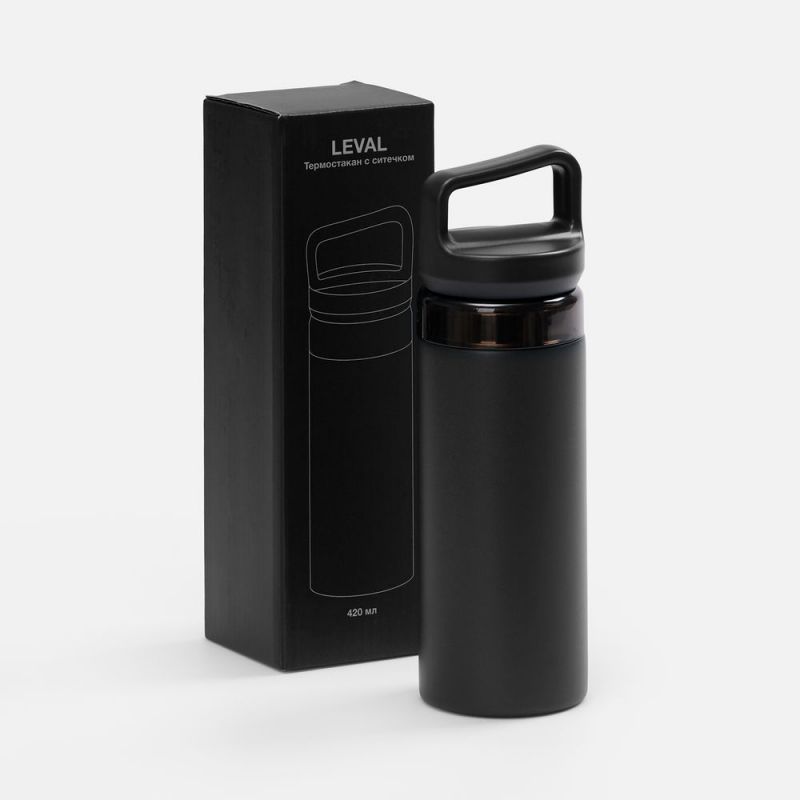 Термостакан Leval компактного размера с ситечком, удобной ручкой для переноски и надежной завинчивающейся крышкой — идеальный спутник на каждый день, готовый всегда поддерживать своего владельца горячим чаем, кофе или освежающей прохладной водой.