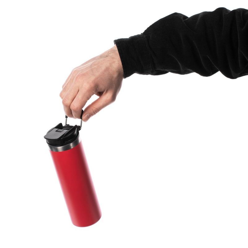 Лаконичный дизайн с ровным цилиндрическим корпусом — специально для круговой печати и гравировки, достаточный объем и привлекательная деталь в виде подвижной квадратной ручки для переноски.