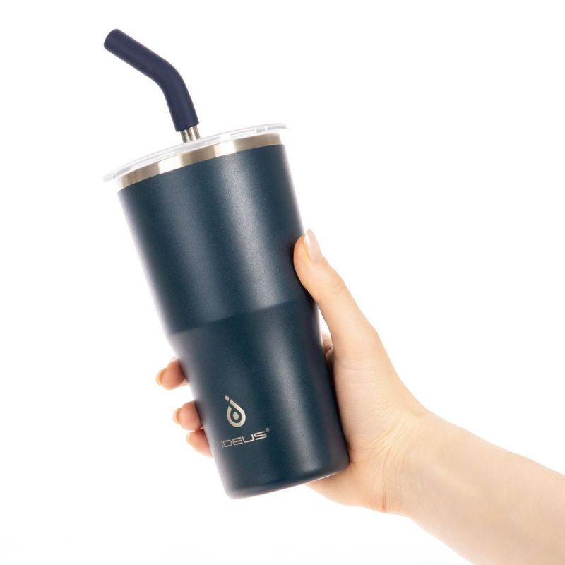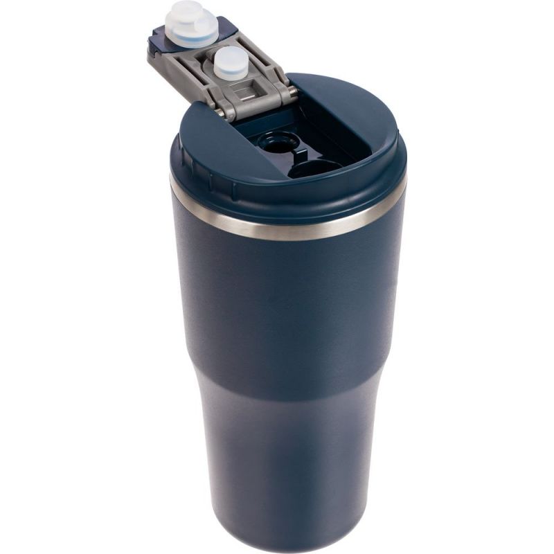 - 2 крышки в комплекте: одна на 100% герметичная с механизмом блокировки отверстия для питья, вторая — с отверстием для трубочки