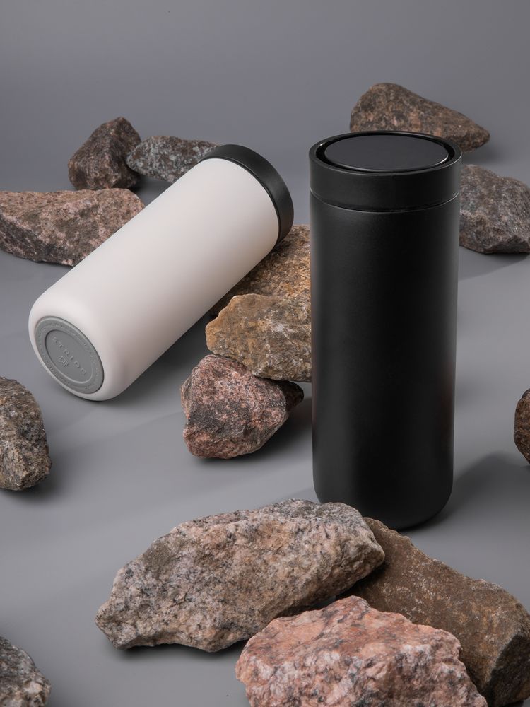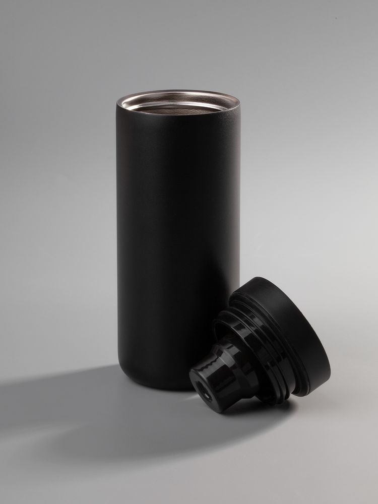 Лаконичный термостакан с удобным клапаном, который открывается и закрывается одним нажатием, — и пить можно с любой стороны.