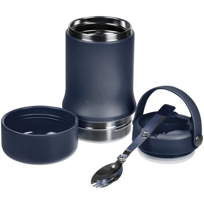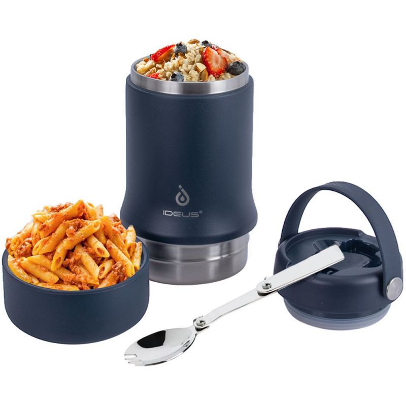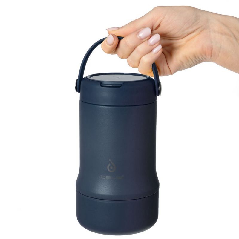 Tabenodo — универсальный многофункциональный термос для работы, школы, похода и путешествия. В компактном корпусе разместились ложка, тарелка и емкость для любимого блюда. Матовая поверхность приятна на ощупь, а силиконовая ручка удобна для переноски.