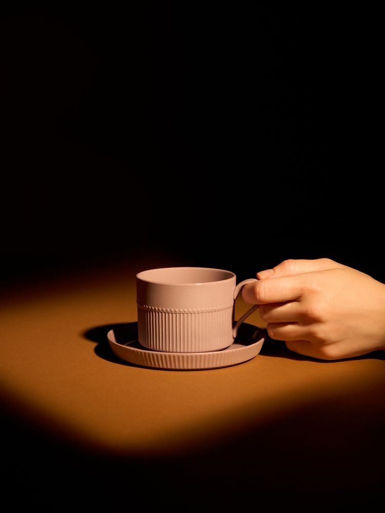 Орнамент корпуса кружки и высокого бортика блюдца напоминает изящные каннелюры — вертикальные желобки на колонне. Это добавляет всему изделию изысканности и стилистической завершенности, благородства и античной строгости.