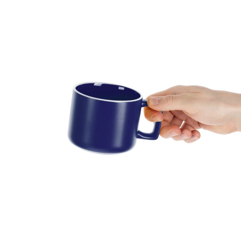 Глазурь спокойных оттенков, матовая снаружи и глянцевая внутри, графичная прямоугольная ручка — с чашкой Fusion не захочется расставаться.