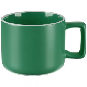Глазурь спокойных оттенков, матовая снаружи и глянцевая внутри, графичная прямоугольная ручка — с чашкой Fusion не захочется расставаться.