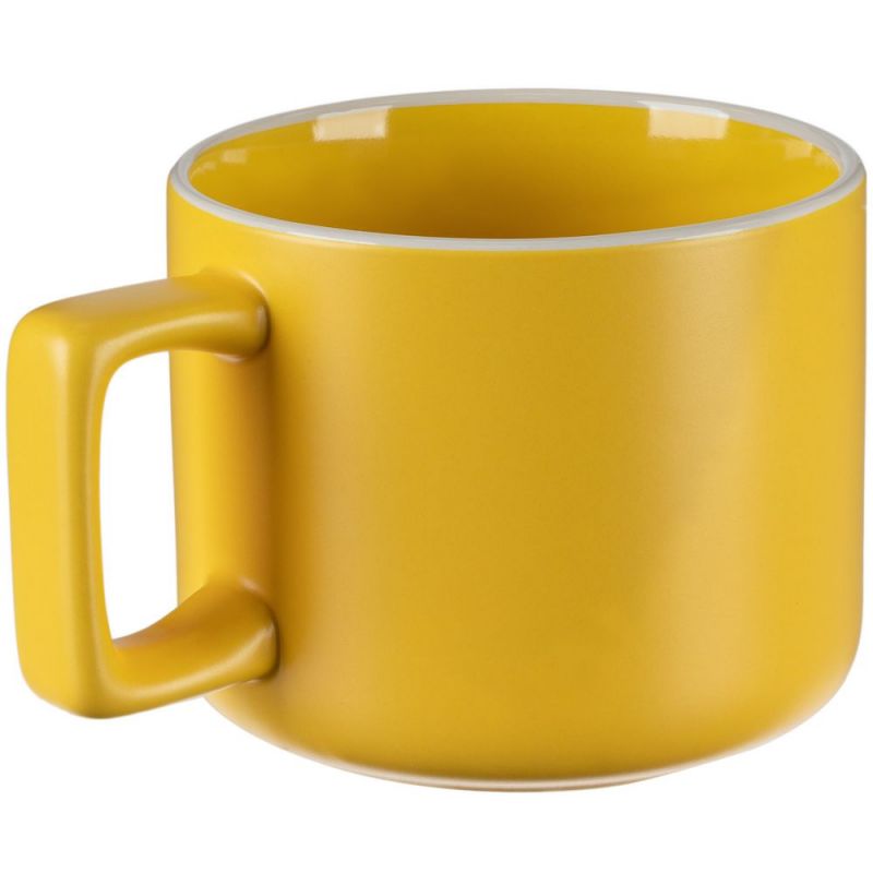 Глазурь спокойных оттенков, матовая снаружи и глянцевая внутри, графичная прямоугольная ручка — с чашкой Fusion не захочется расставаться.