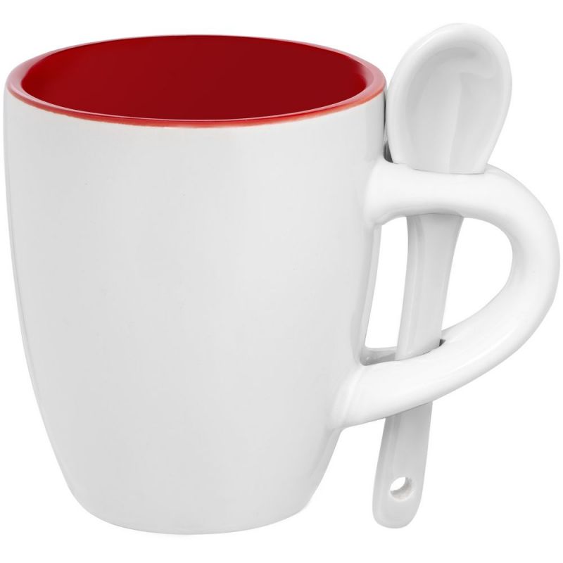 Кофейная кружка Pairy с ложкой, красная с белой