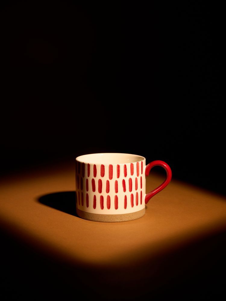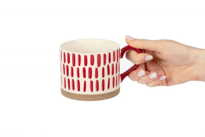 Образ кружки в уютном деревенском стиле завершает как будто необработанный керамический ободок у основания.