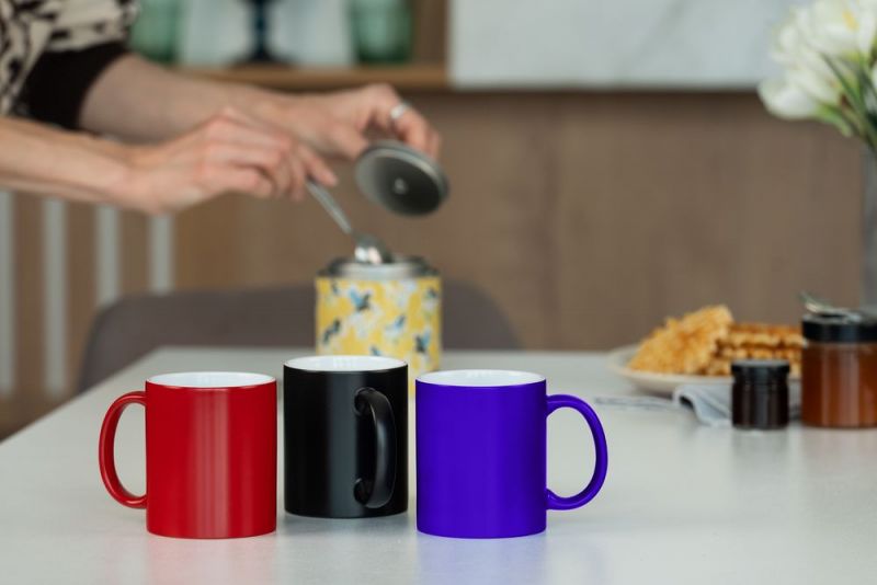 Кружка «Хамелеон» обладает интересным эффектом: стоит налить горячую воду, и ее цвет поменяется на белый.