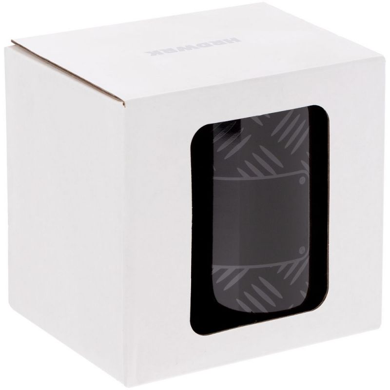 Кружка упакована в тематическую коробку с фирменным паттерном.