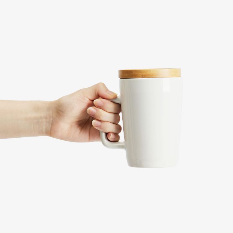 Главная особенность объемной кружки Vierra — это многофункциональная крышка-костер из бамбука. Она поможет защитить напиток от пыли или остывания, а также предотвратит нагревание стола или образование на нем пятен. А еще на ней удобно подавать небольшой комплемент к чаю: печенье или конфета прекрасно ложатся в углубление, составляя со стильной вытянутой кружкой элегантный дуэт.