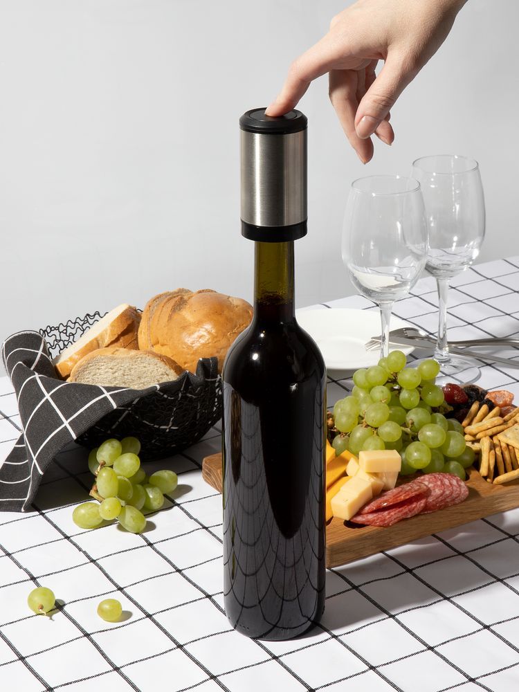 Электрическая пробка Tuoretta поможет одним нажатием кнопки удалить из бутылки весь воздух и сохранить напиток свежим до 7 дней. Внутренняя часть изготовлена из пищевого силикона и не добавляет никаких посторонних ароматов содержимому бутылки.
