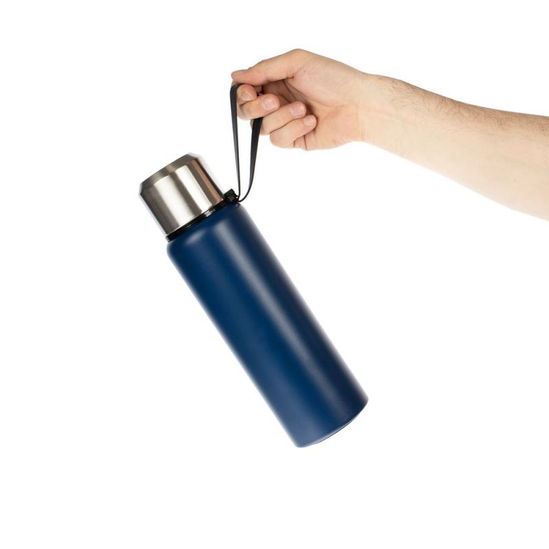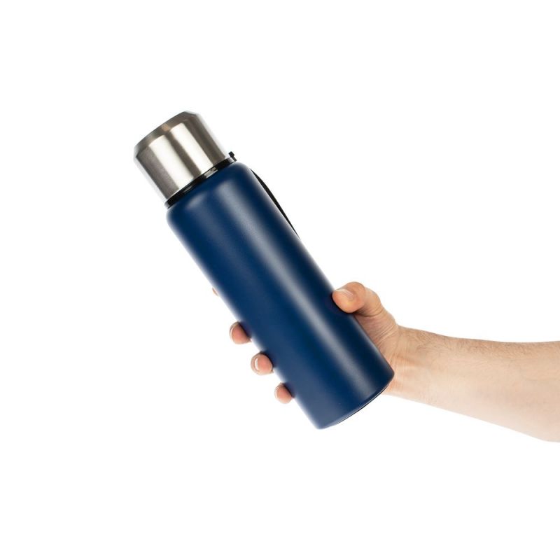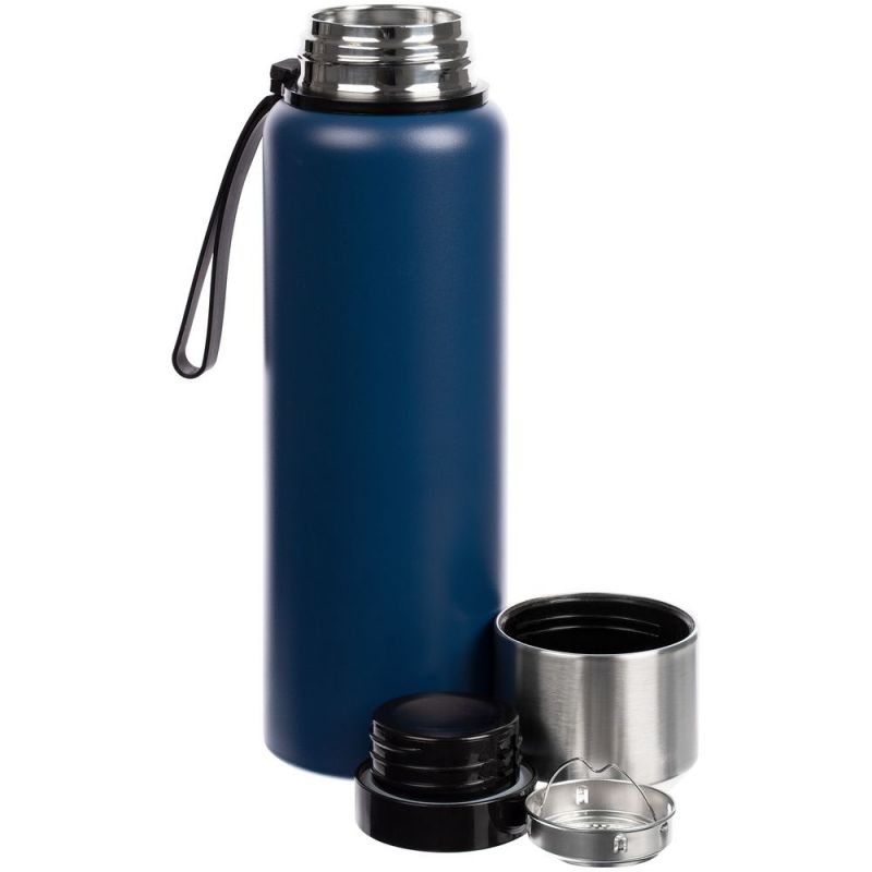 Термос в строгом металлическом корпусе с вакуумной изоляцией. Завинчивающаяся пробка, крышка-чашка и ситечко для фильтрации — удобно заваривать чай или кофе. Напиток останется горячим, а чаинки не попадут в чашку.