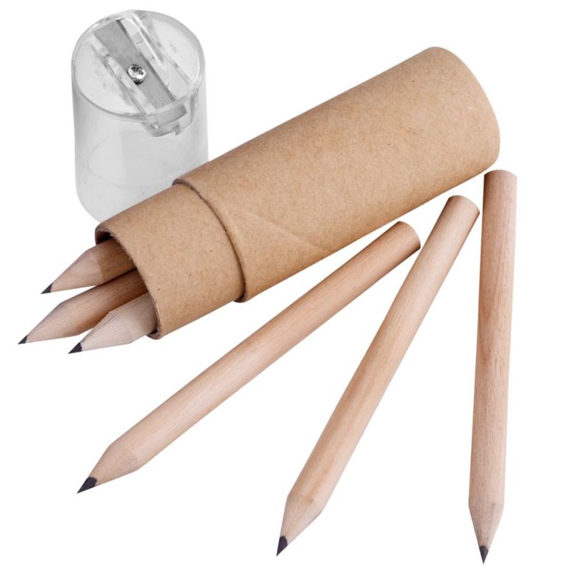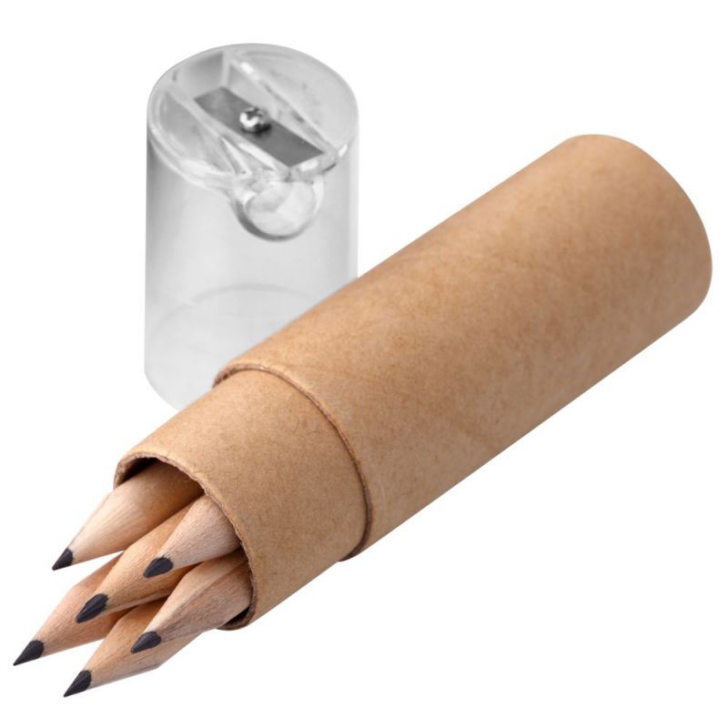 В комплекте: 6 заточенных простых карандашей HB, пенал с точилкой.