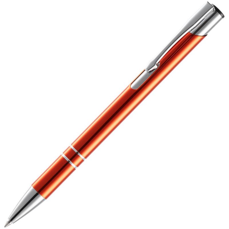 Яркая шариковая ручка с глянцевым цветным корпусом и хромированными деталями.