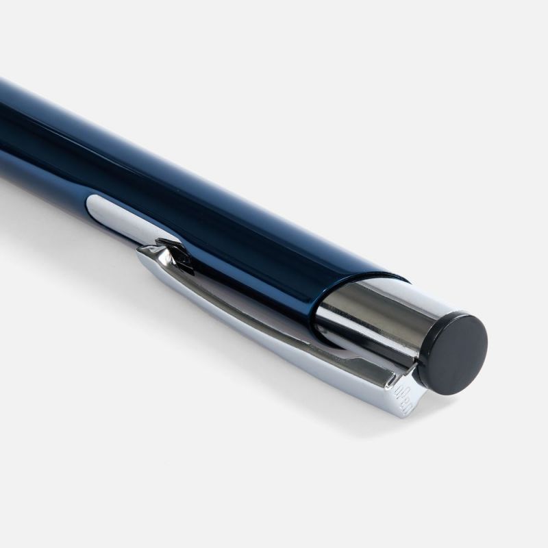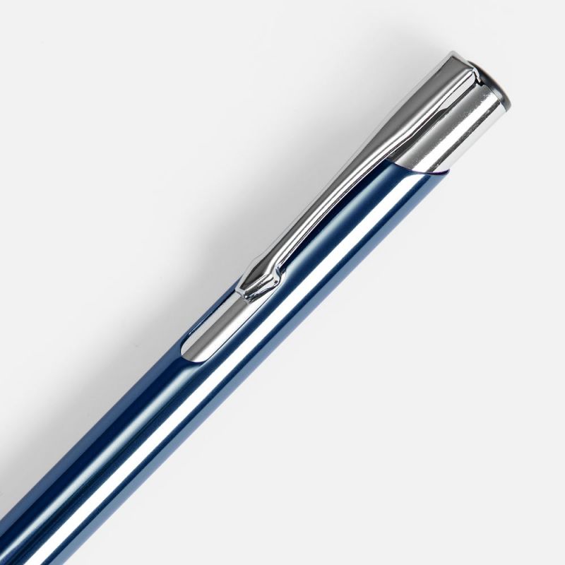 Яркая шариковая ручка с глянцевым цветным корпусом и хромированными деталями.