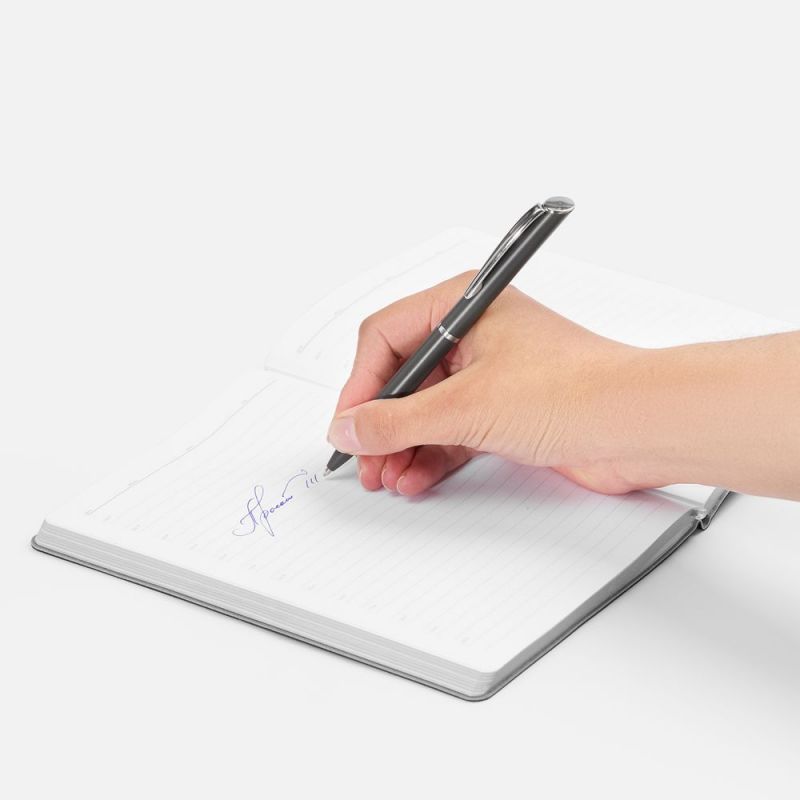 Классическая металлическая ручка с матовым покрытием и хромированными деталями.
