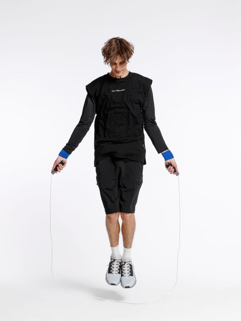 Благодаря мягкому неопреновому покрытию ручки не скользят в ладонях. Трос с сердцевиной из металлического кабеля с гладкой оплеткой из ПВХ не запутывается при скоростном кручении, обеспечивая высокий контроль и управляемость.