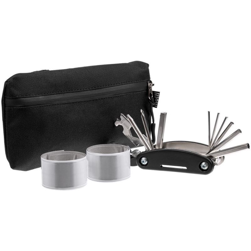 Этот набор велосипедиста идеально подходит для повседневного использования. Сумка, в которую легко помещаются велосипедный мультитул, светоотражающие браслеты и другие необходимые в пути мелочи, крепится к рулю или к раме лентами велкро и не мешает езде.