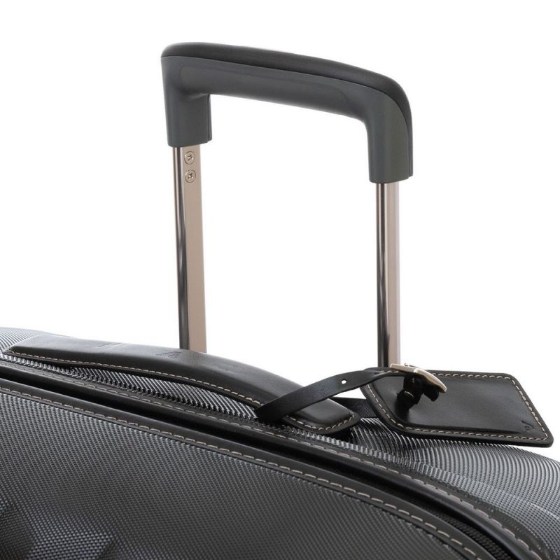 Наружные и внутренние элементы — ручки, фурнитура, обрамление молний и адресная бирка — выполнены из натуральной кожи, благодаря чему чемодан E-Lite приобретает по-настоящему изысканный вид.
